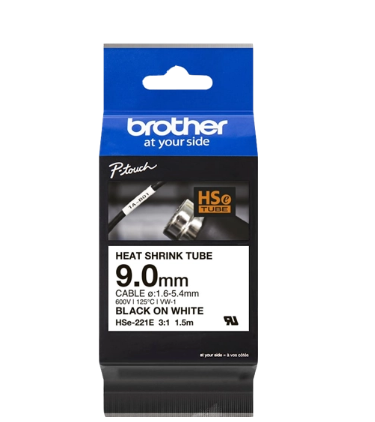 Rurka termokurczliwa Brother HSe-221E 9,0mm x 1,5m czarny nadruk / białe tło