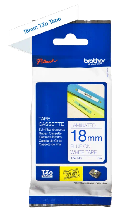 Taśma lamin. Brother TZE-243 18mm x 8m niebieski nadruk / białe tło do drukarki Brother PTE550WVP, Brother PTE300VP, Brother PTH500, Brother PTD400, Brother PTD800W, Brother PTD450VP, Brother PTD600VP, Brother PTP300BT, Brother PTP750W, Brother PTP750TDI, Brother PTP900W, Brother PTP950NW, Brother PTP710BT, Brother PT1750, Brother PT1800, Brother PT1830, Brother PT18R, Brother PT1950, Brother PT2030VP, Brother PT2100, Brother PT2420PC, Brother PT2430PC, Brother PT2470, Brother PT2480, Brother PT2700VP, Brother PT2730VP, Brother PT7500VP, Brother PT7600VP, Brother PT9200DX, Brother PT9400, Brother PT9500PC, Brother PT9600. OryginalnaTaśma laminowana Brother TZE-243 to gwarancja wysokiej jakości produktu i dobrej ceny! Oferujemy tanie materiały eksploatacyjne do drukarek Brother. Przekonaj się sam zamawiając już teraz w naszym sklepie online www.everprint.pl!
