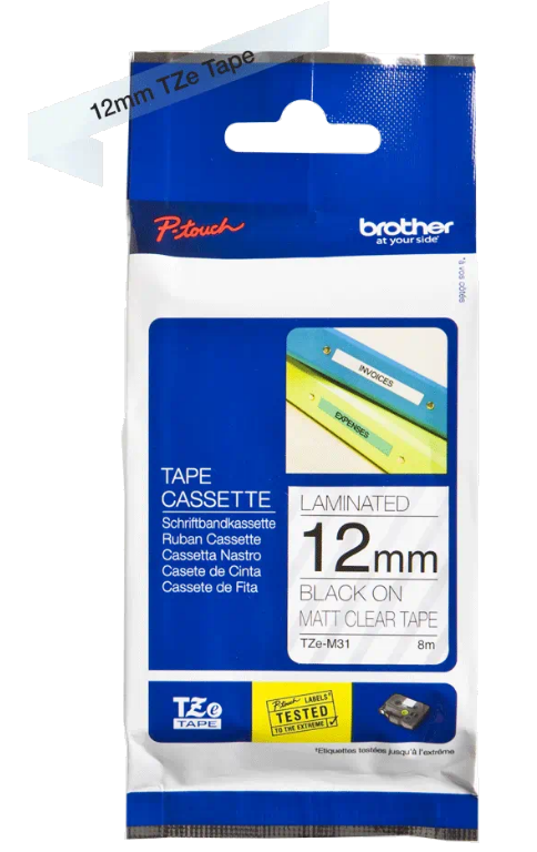 Taśma lamin. Brother TZE-M31 12mm x 8m czarny nadruk / matowe przeźroczyste tło do drukarki Brother PTD200, Brother PTH105, Brother PTH500, Brother PTP750W, Brother PTP900W, Brother PTP710BT, Brother PTD800W, Brother PTP950NW, Brother PTD200BWVP, Brother PTD210, Brother PTD210VP, Brother PTD400, Brother PTD450VP, Brother PTD600VP, Brother PTH105WB, Brother PTH107B, Brother PTH110, Brother PTP300BT, Brother PTP910BT, Brother PTE110VP, Brother PTE300VP, Brother PTE550WSP, Brother PTE550WVP, Brother GL-H105, Brother GL-H105VP, Brother PT1000, Brother PT1000L, Brother PT1010, Brother PT1090, Brother PT1230PC, Brother PT1260VP, Brother PT1280DT, Brother PT1290, Brother PT1750, Brother PT18R, Brother PT2030VP, Brother PT2420PC, Brother PT2430PC, Brother PT2480, Brother PT2700VP, Brother PT2730VP, Brother PT3600, Brother PT7100VP, Brother PT7500VP, Brother PT7600VP, Brother PT9500PC, Brother PT9600, Brother PTD200VP, Brother PTH300, Brother PTP700, Brother PTP750TDI, Brother PT1005, Brother PT1010L, Brother PT1080, Brother PT1800. OryginalnaTaśma laminowana Brother TZE-M31 to gwarancja wysokiej jakości produktu i dobrej ceny! Oferujemy tanie materiały eksploatacyjne do drukarek Brother. Przekonaj się sam zamawiając już teraz w naszym sklepie online www.everprint.pl!