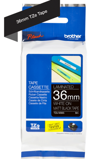 Taśma lamin. Brother TZE-M365 36mm x 8m biały nadruk / czarne matowe tło do drukarki Brother PTP900W, Brother PTD800W, Brother PTP950NW, Brother PTP910BT, Brother PT9400, Brother PT3600, Brother PT9500PC, Brother PT9600, Brother PT9200DX. OryginalnaTaśma laminowana Brother TZE-M365 to gwarancja wysokiej jakości produktu i dobrej ceny! Oferujemy tanie materiały eksploatacyjne do drukarek Brother. Przekonaj się sam zamawiając już teraz w naszym sklepie online www.everprint.pl!