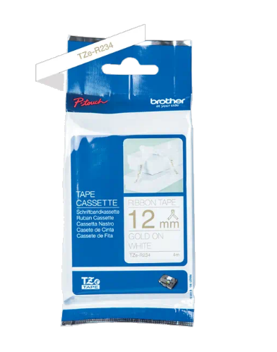 Taśma wstążkowa Brother TZE-R234 12mm x 4m złoty nadruk / białe tło do drukarki Brother PTD200, Brother PTH105, Brother PTH500, Brother PTP750W, Brother PTP900W, Brother PTP710BT, Brother PTD800W, Brother PTP950NW, Brother PTD200BWVP, Brother PTD210, Brother PTD210VP, Brother PTD400, Brother PTD450VP, Brother PTD600VP, Brother PTH105WB, Brother PTH107B, Brother PTH110, Brother PTP300BT, Brother PTP910BT, Brother PT1000, Brother PT1000L, Brother PT1010, Brother PT1090, Brother PT1230PC, Brother PT1260VP, Brother PT1280DT, Brother PT1290, Brother PT1750, Brother PT18R, Brother PT2030VP, Brother PT2420PC, Brother PT2430PC, Brother PT2480, Brother PT2700VP, Brother PT2730VP, Brother PT3600, Brother PT7100VP, Brother PT7500VP, Brother PT7600VP, Brother PT9500PC, Brother PT9600, Brother PTD200VP, Brother PTH300, Brother PTP700, Brother PTP750TDI, Brother PT1005, Brother PT1010L, Brother PT1080, Brother PT1800, Brother PT1950, Brother PT2100, Brother PT2470, Brother PT9200DX, Brother PT9400, Brother PTH75. OryginalnaTaśma wstążkowa Brother TZE-R234 to gwarancja wysokiej jakości produktu i dobrej ceny! Oferujemy tanie materiały eksploatacyjne do drukarek Brother. Przekonaj się sam zamawiając już teraz w naszym sklepie online www.everprint.pl!