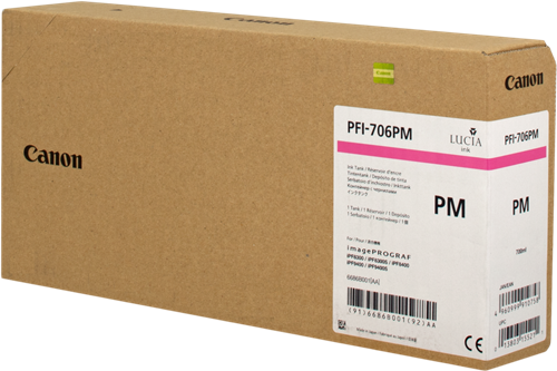 Tusz Canon PFI-706PM Photo Magenta do drukarki Canon IPF8400SE, Canon iPF 8300, Canon iPF 8300S, Canon iPF 8400, Canon iPF 8400S, Canon iPF 9400, Canon iPF 9400S. Produkt oryginalny. Tusz Canon 6686B001 ma pojemność 700 ml. Oferujemy tanie materiały eksploatacyjne do drukarek. Zamów już teraz w sklepie online Everprint.pl!